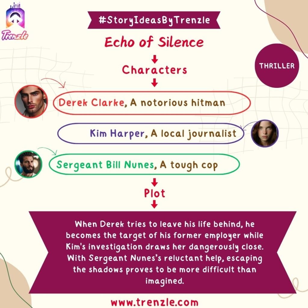 Main Characters: Liam Hayes– An undercover agent; Olivia Cross– A journalist covering urban crime; Detective James Owens– A hard-boiled cop.