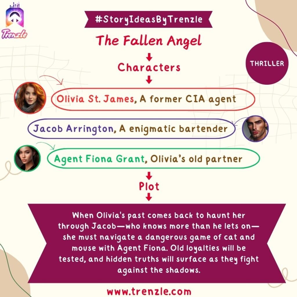 Main Characters: Olivia St. James– A former CIA agent; Jacob Arrington– A enigmatic bartender; Agent Fiona Grant– Olivia’s old partner.