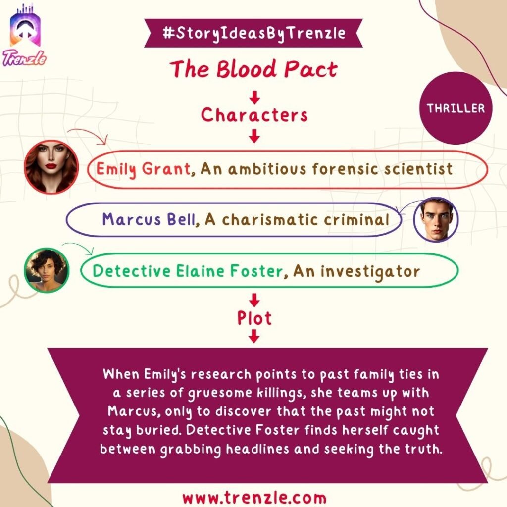 Main Characters: Emily Grant– An ambitious forensic scientist; Marcus Bell– A charismatic criminal; Detective Elaine Foster– An investigator.