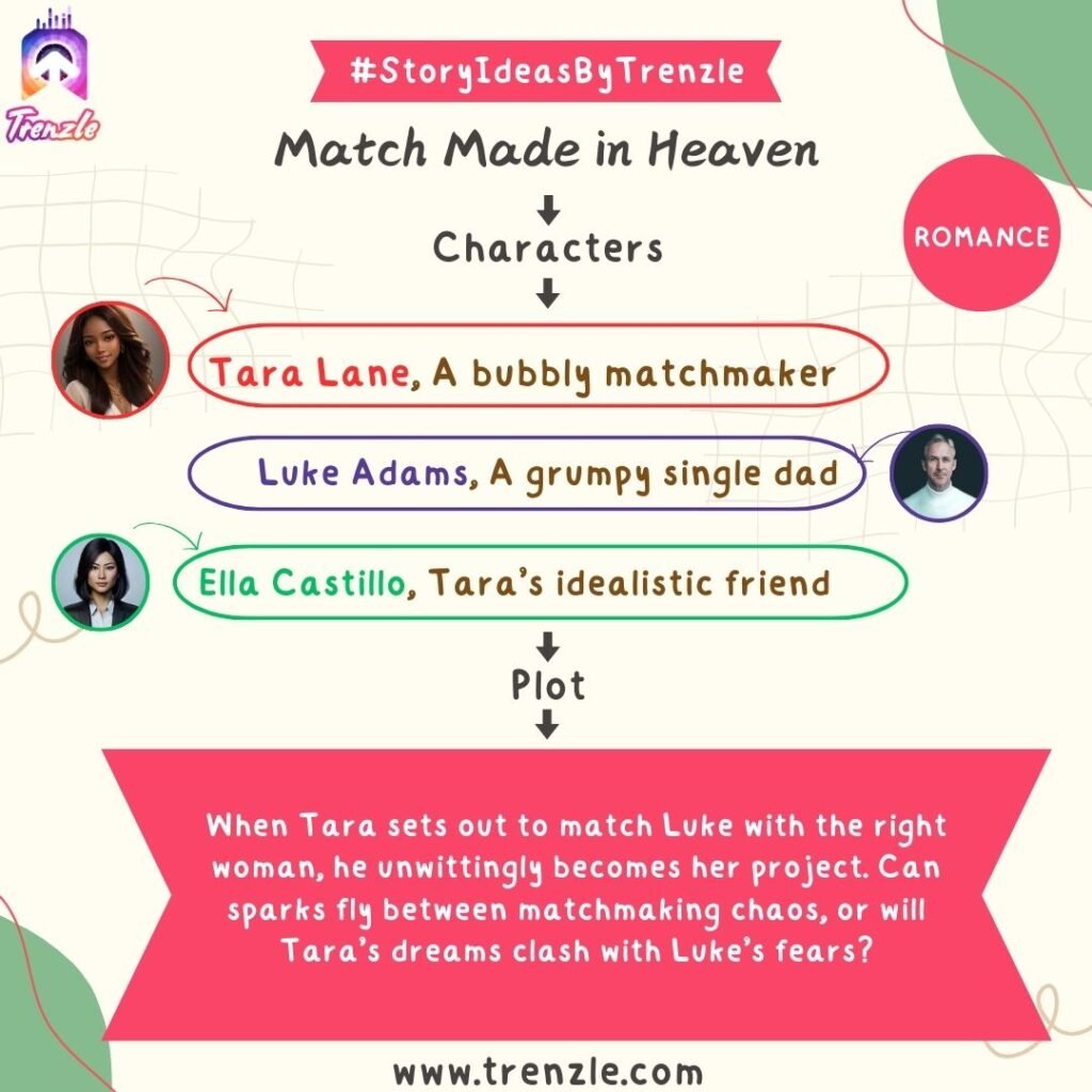 Main Characters:Tara Lane– A bubbly matchmaker; Luke Adams– A grumpy single dad; Ella Castillo– Tara’s idealistic friend.