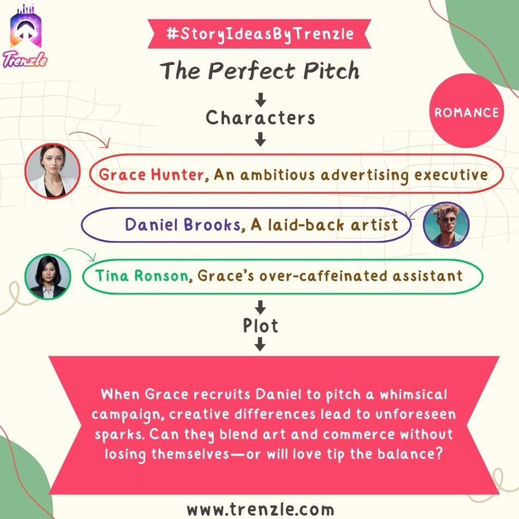 Main Characters:Grace Hunter– An ambitious advertising executive; Daniel Brooks– A laid-back artist; Tina Ronson– Grace’s over-caffeinated assistant.