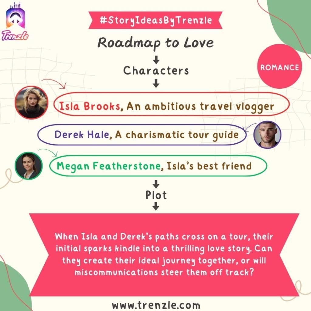 Main Characters:Isla Brooks– An ambitious travel vlogger; Derek Hale– A charismatic tour guide; Megan Featherstone– Isla’s best friend.
