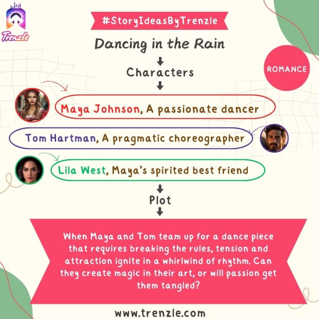 Main Characters:Maya Johnson– A passionate dancer; Tom Hartman– A pragmatic choreographer; Lila West– Maya’s spirited best friend.