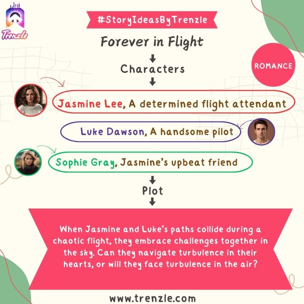 Main Characters:Jasmine Lee– A determined flight attendant; Luke Dawson– A handsome pilot; Sophie Gray– Jasmine’s upbeat friend.