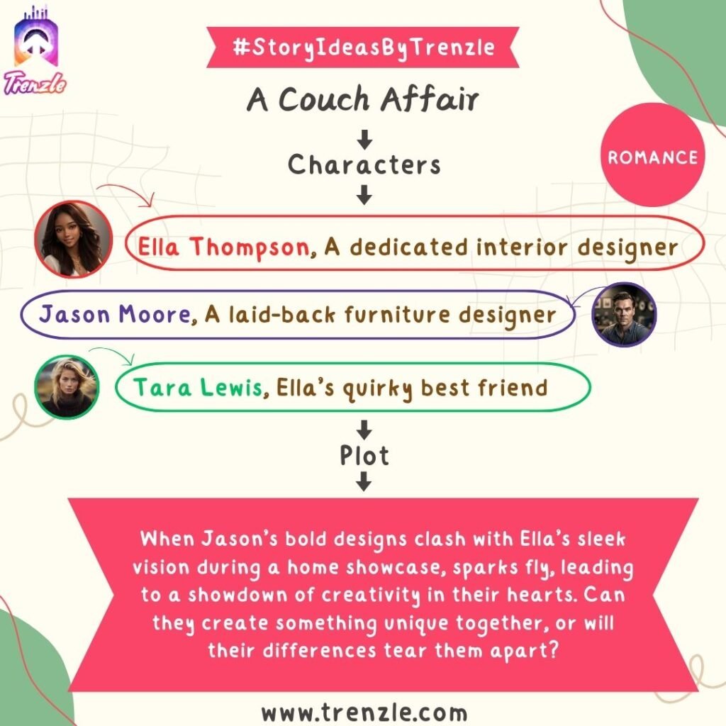 Main Characters:Ella Thompson– A dedicated interior designer; Jason Moore– A laid-back furniture designer; Tara Lewis– Ella’s quirky best friend.