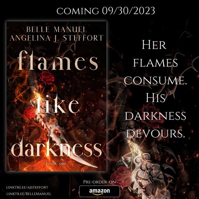 The latest plug for Flames like Darkness by Belle Manuel and Angelina J. Steffort is in! The book cover has been revealed on Belle Manuel and Angelina J. Steffort IG page.