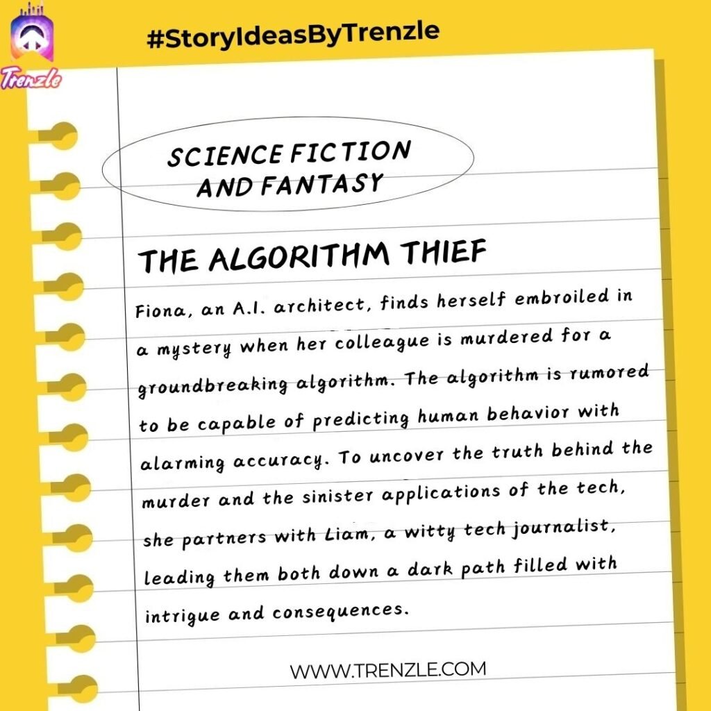 Fiona, an A.I. architect, finds herself embroiled in a mystery when her colleague is murdered for a groundbreaking algorithm. The algorithm is rumored to be capable of predicting human behavior with alarming accuracy. To uncover the truth behind the murder and the sinister applications of the tech, she partners with Liam, a witty tech journalist, leading them both down a dark path filled with intrigue and consequences.