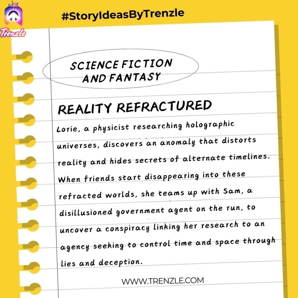 Lorie, a physicist researching holographic universes, discovers an anomaly that distorts reality and hides secrets of alternate timelines. When friends start disappearing into these refracted worlds, she teams up with Sam, a disillusioned government agent on the run, to uncover a conspiracy linking her research to an agency seeking to control time and space through lies and deception.