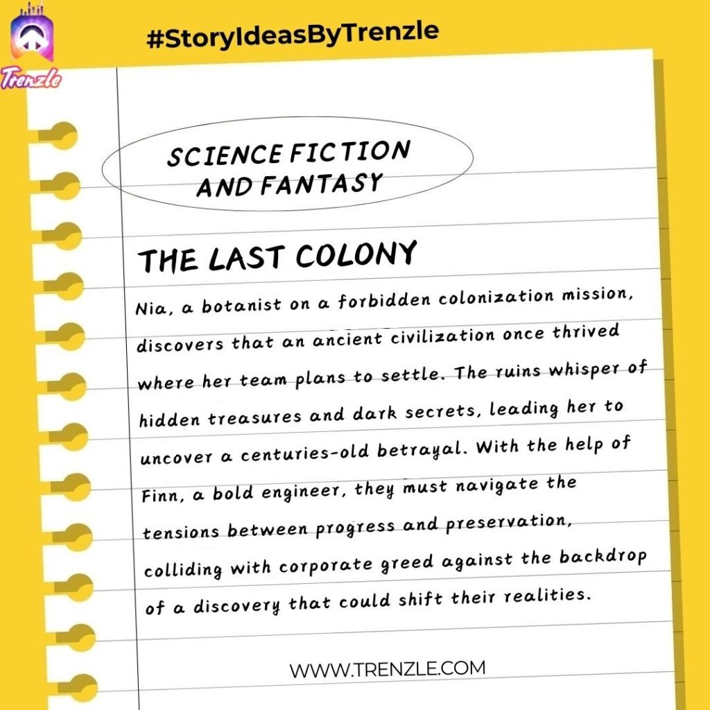 Nia, a botanist on a forbidden colonization mission, discovers that an ancient civilization once thrived where her team plans to settle. The ruins whisper of hidden treasures and dark secrets, leading her to uncover a centuries-old betrayal. With the help of Finn, a bold engineer, they must navigate the tensions between progress and preservation, colliding with corporate greed against the backdrop of a discovery that could shift their realities.