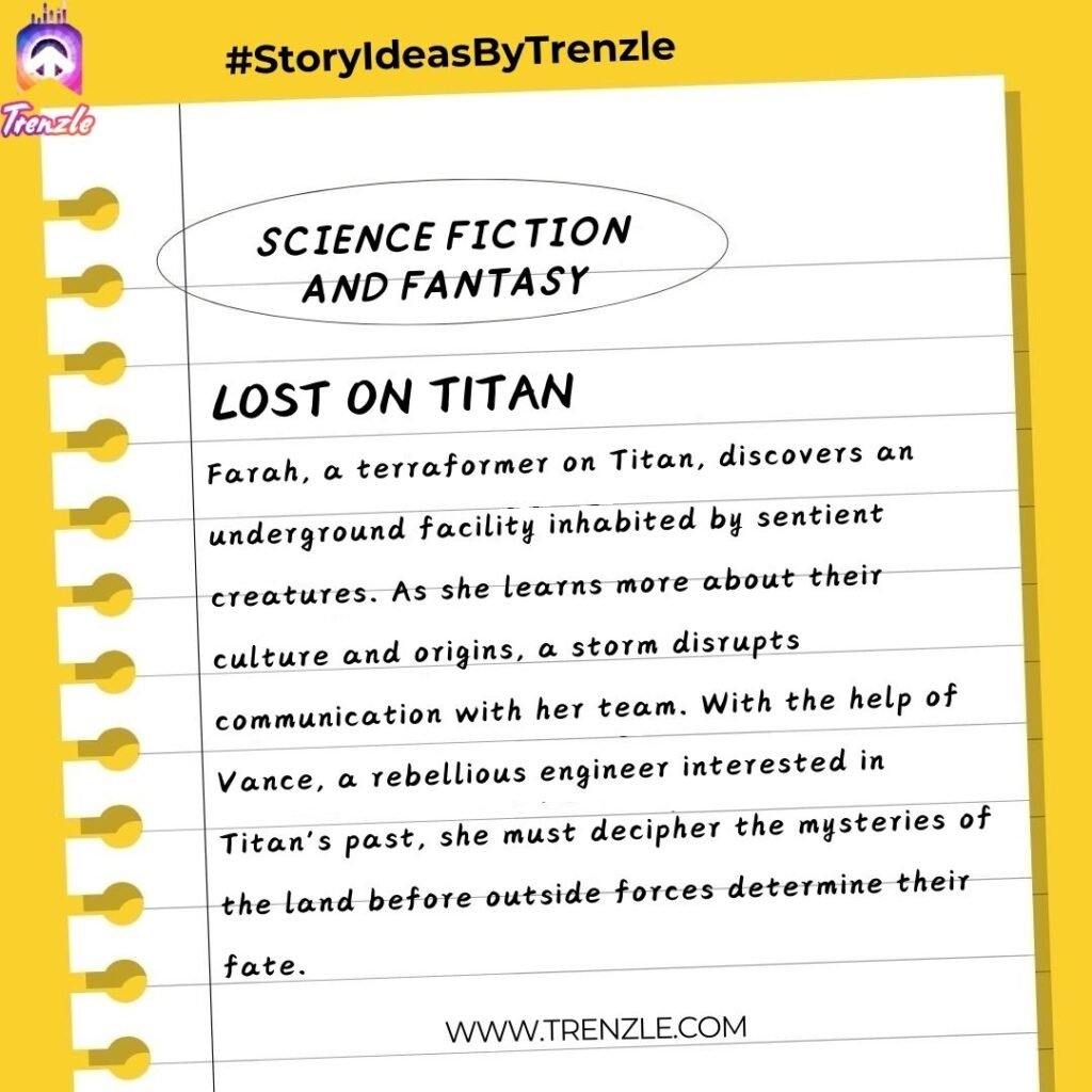 Farah, a terraformer on Titan, discovers an underground facility inhabited by sentient creatures. As she learns more about their culture and origins, a storm disrupts communication with her team. With the help of Vance, a rebellious engineer interested in Titan’s past, she must decipher the mysteries of the land before outside forces determine their fate.